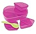 Reviews for Sassy On the Go Feeding Set, Pink (Baby Product) Bought this set for my 2 12 months old's preschool lunches. Works great! Everything is contained and no extra working out of sandwich bags. Perfect dimension and fits great in her lunchbox. Love so much I bought the blue one as smartly. Easy to position in dishwasher so clean up is a breeze.